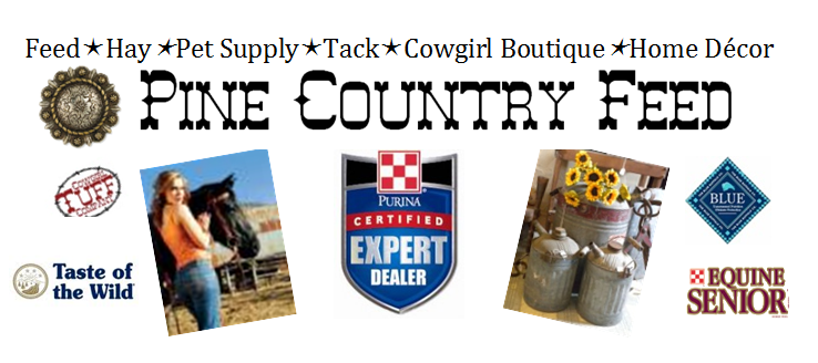 One stop shopping for all of your farm animals and pets. We carry Purina, Mazuri, Manna Pro, and Kent Feeds. Our Pet Food lines include Canidae, Blue Buffalo, Taste of the Wild, Diamond, Nutro, Chicken Soup, AvoDerm, Active Care, Natural Balance, Exclusive, Red Flannel and more. Great selection of tack, saddle pads, blankets and consignment saddles. We have over 16 types of Wild Bird Seed and lots of Bird Feeders. You need Ranch Supplies....we’ve got ‘em: Stock Tanks, Fencing Supplies, Buckets, Feeders, and more. Upstairs is a wonderful gift shop with antiques, great gifts, home décor and artwork. Check out our Cowgirl Boutique...great jeans by Cowgirl Tuff and Ranch Royalty, tops, tees, boots, accessories, and more!